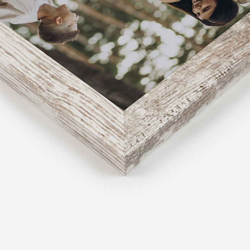 Moldura de alta qualidade, composta por uma estrutura em madeira com aspecto rústico, garantindo durabilidade e um acabamento perfeito para destacar as tuas fotos.