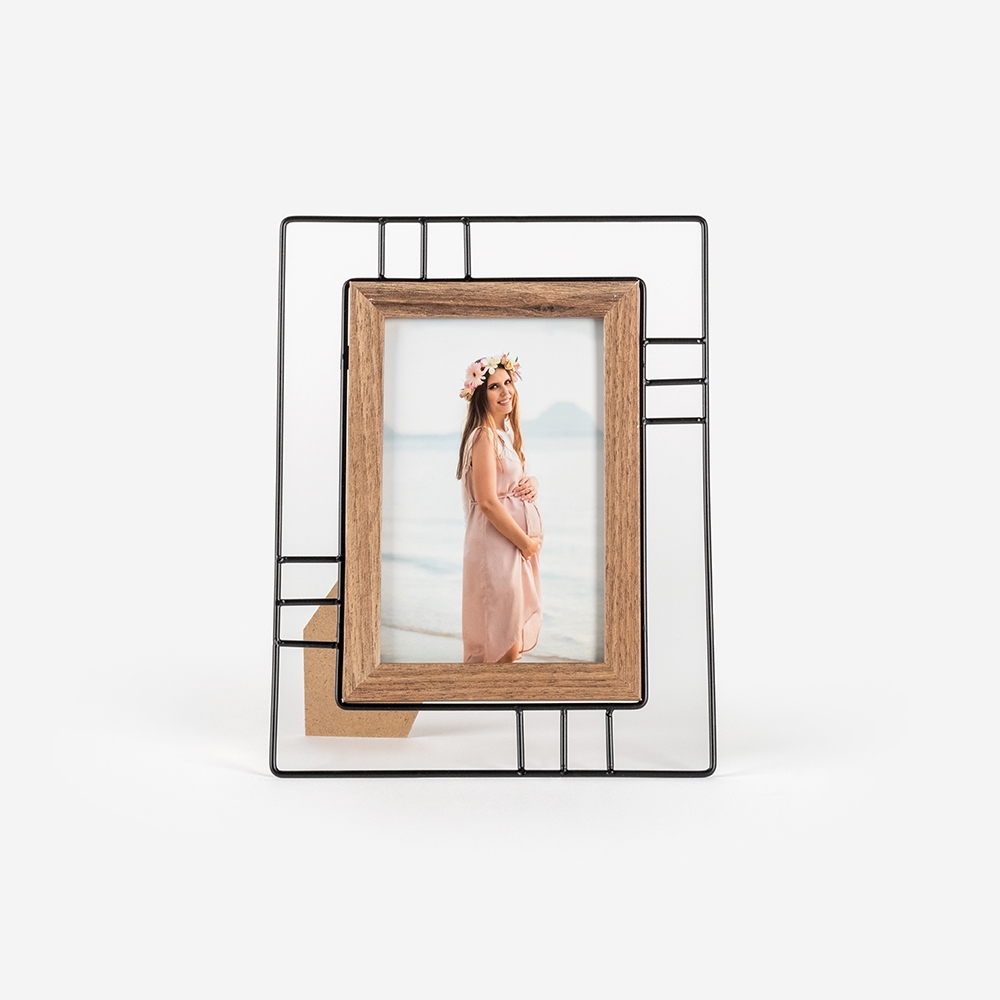 Moldura de alta qualidade, fabricado em metal com um apontamento em MDF, garantindo durabilidade e um acabamento perfeito para destacar as tuas fotos.